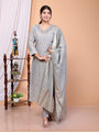 Grey Woven Design Roman Silk Blend Straight Kurta Set With Dupatta